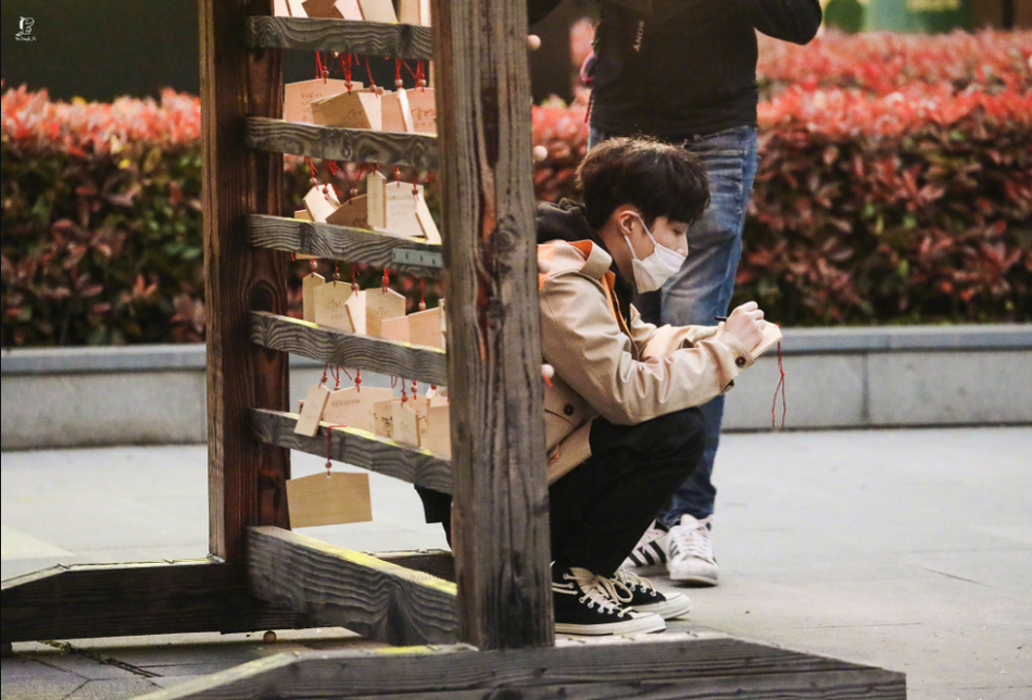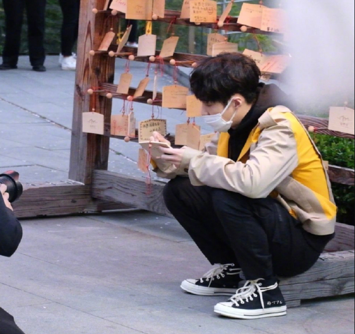 组图:暖!张艺兴《极限挑战6》路透照 蹲地上写许愿牌祈福平安