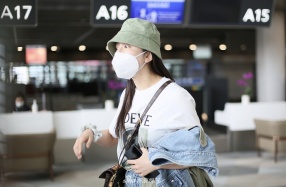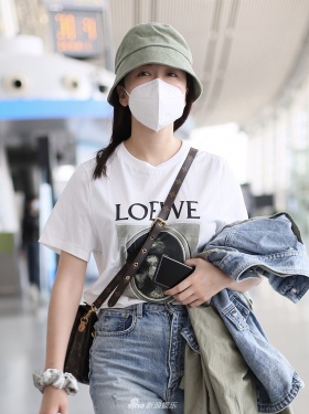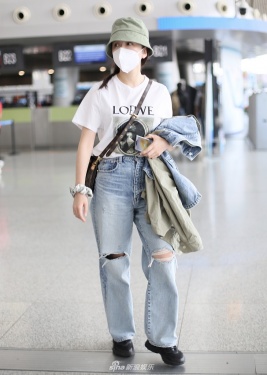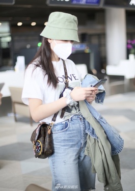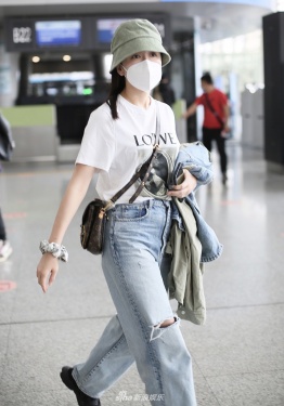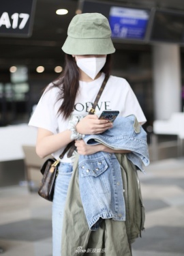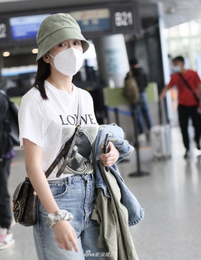 >组图:娄艺潇素颜装扮休闲现身机场 提醒粉丝早点回家超暖心