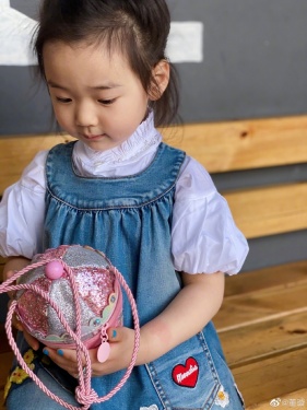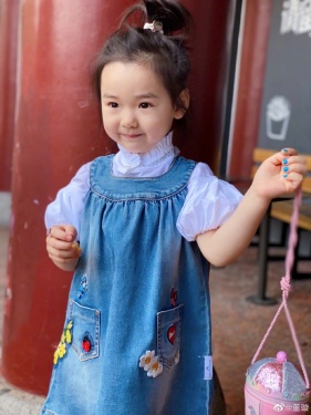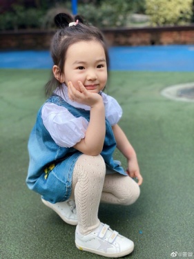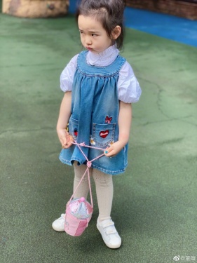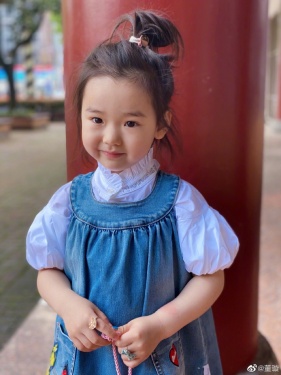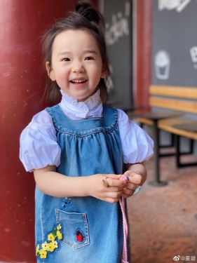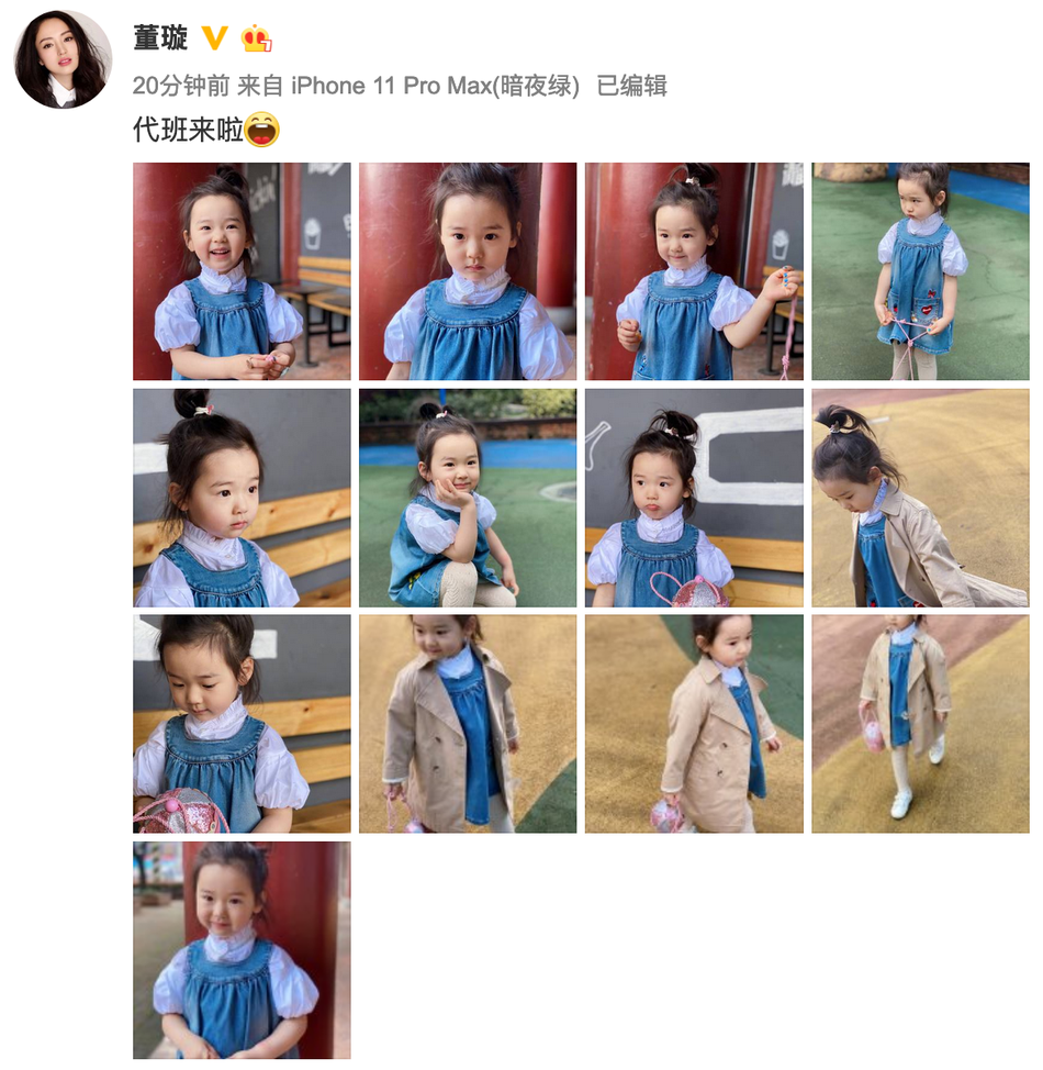 新浪娱乐讯 4月17日,董璇在微博分享女儿小酒窝的萌照,并配文:“代班来啦”。照片中的小酒窝扎着丸子头,身穿泡泡袖上衣配无袖牛仔裙,搭配淡黄色长筒袜,对镜灿笑并摆各种pose,肉脸嘟嘟,画面可爱激萌。