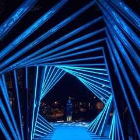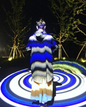 新浪娱乐讯 4月19日,周迅在微博晒出一组写真。在蓝白圈圈的灯光投影下,周迅只露出影子和背影,惹粉丝直呼“糊弄人”,“看看正脸”。