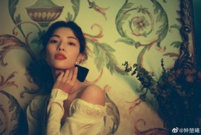 >组图:钟楚曦抹胸上衣波点裙妩媚性感 复古格调写真如梦似幻