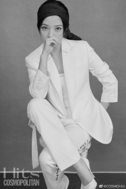 >组图:赵薇最新写真极简风格显文艺 穿白西装搭配黑头巾知性优雅