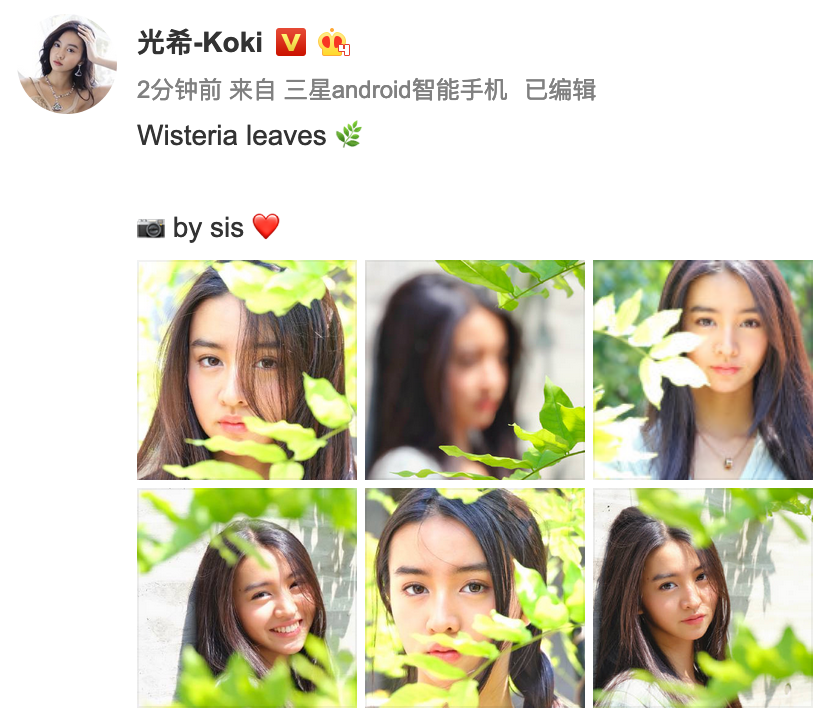 组图:木村光希晒美照姐姐心美掌镜 漫步绿丛光影间展青春元气
