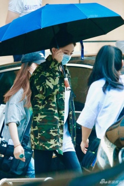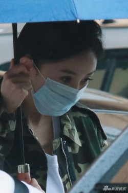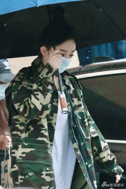 >组图:杨幂穿迷彩外套在京开拍新戏 妆容精致侧颜迷人