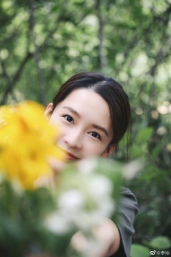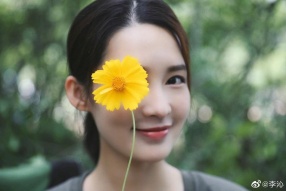 >组图:李沁拿鲜花遮眼睛小清新又文艺 甜甜一笑犹如画中人