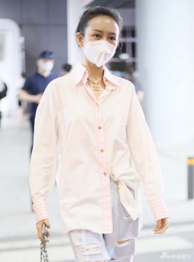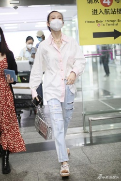 新浪娱乐讯 2020年5月14日,长沙,王鸥现身机场。扎着马尾的她口罩遮面,身着淡粉衬衫,并将部分折进牛仔裤,更显腿长。