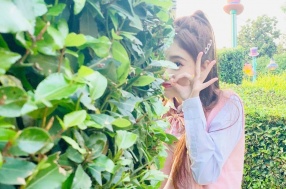 >组图:鞠婧祎校服造型游迪士尼阳光元气 格子短裙大秀美腿