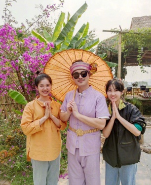 新浪娱乐讯 最新一期《向往的生活》中,沙溢穿着特色服装,周迅、何炅、张子枫、彭昱畅、小陶虹、郭麒麟等人纷纷与他合影。沙溢如同西双版纳著名景点。