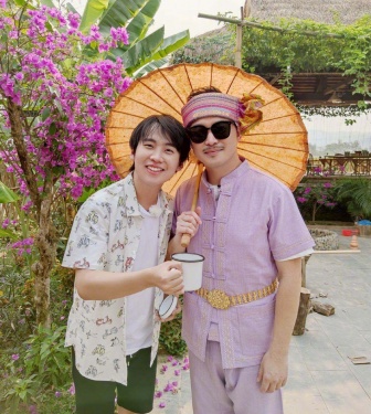 组图:周迅何炅等轮番与沙溢合影 似成西双版纳著名景点