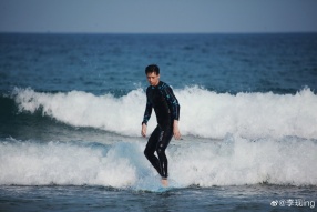 新浪娱乐讯 5月23日,冲浪boy李现如约上线,在绿洲分享了一组“520”答应粉丝们的飒爽“乘风破浪大片”。在照片中,李现帅气的身影在白色的浪花中若隐若现,在温暖阳光的照耀下李现恣意挥洒汗水,展露笑容,真的是令粉丝们大饱眼福。