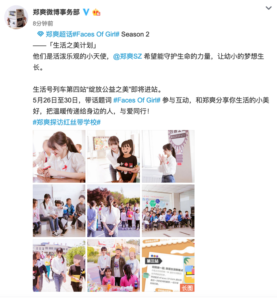 组图:郑爽热心公益探访红丝带学校 穿着朴素送温暖传递正能量