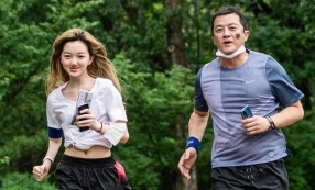 >组图:14岁李嫣与爸爸一同做公益 父女二人齐跑步露甜笑状态好