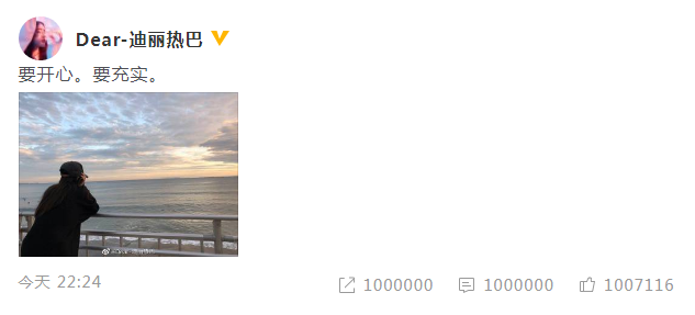 6月3日是迪丽热巴的生日,晚间她在微博发文,“要开心。要充实。 ”