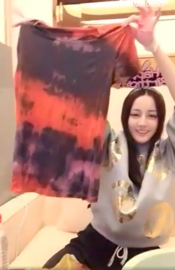 >组图:这颜值太可了!热巴生日直播尝试做扎染 戴发箍可可爱爱