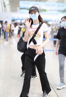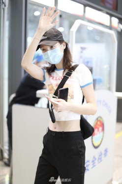 >组图:金晨大清早搭机戴腰链秀纤腰 一路笑脸盈盈心情好
