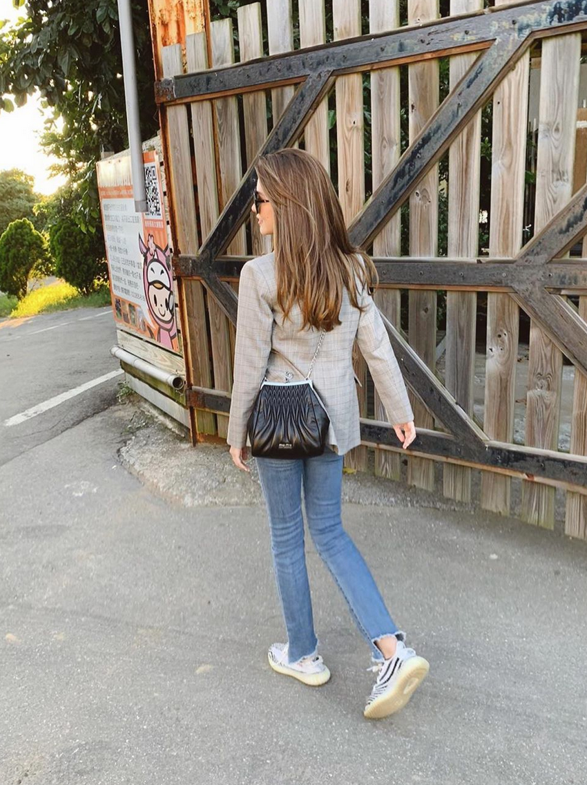 昆凌在社交平台晒出一组出游照。她穿着格纹西服配紧身牛仔裤秀出修长美腿,回眸浅笑明媚清甜。