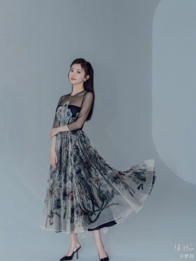 6月19日,景甜在绿洲晒出黑纱裙写真美照,并发文:“将炙夏着墨在裙摆间”。照片中景甜身穿黑纱印花长裙,气质优雅大气,女神范儿十足。