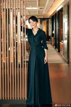 组图:俞飞鸿身着墨绿色长裙 银色项链更衬气质高贵优雅十足