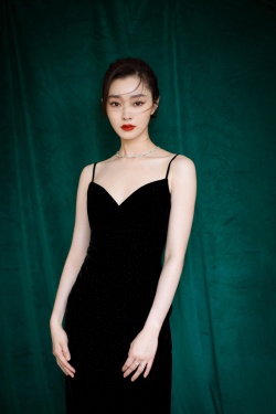 化身眼神柔媚的港式女郎,黑色吊带长裙超显身材,一颦一笑足以让人怦然心动。