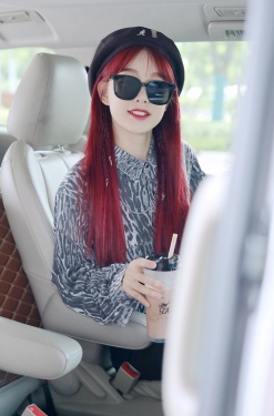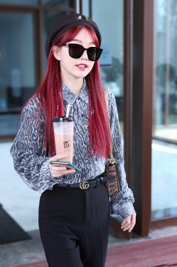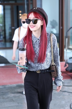 >组图:徐梦洁染红发娇艳似火 戴贝雷帽捧奶茶搭机甜度爆表