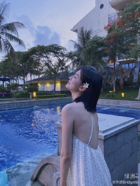 >组图:乔欣泳池边大秀光洁美背 耳后别花回眸眼神妩媚