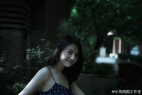 >组图:高圆圆穿吊带裙漫步绿丛中 斑驳光影间仙气飘逸文艺十足