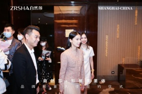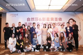 易天商标集团董事长易五根亲切迎接著名影星黄圣依亲临自然莎品牌签约现场