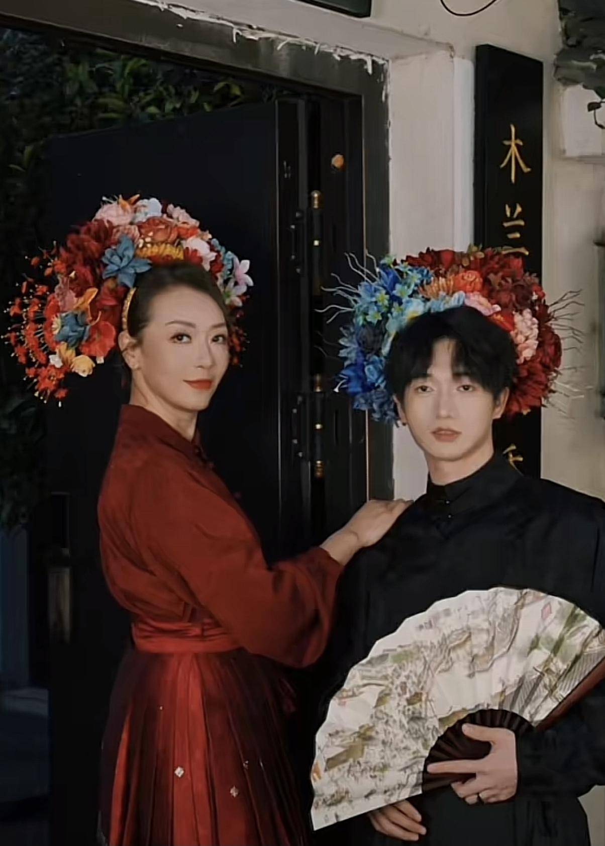 到了目的地后,男方开始帮着郭少芸选衣服,最终二人达成共识,一套黑色和一套红色成为他们的首选,化好妆换好衣服后,他们头上的簪花也都差不多完成,郭少芸看到完成装束的小鲜肉,也是眼前一亮,大赞其帅气十足。