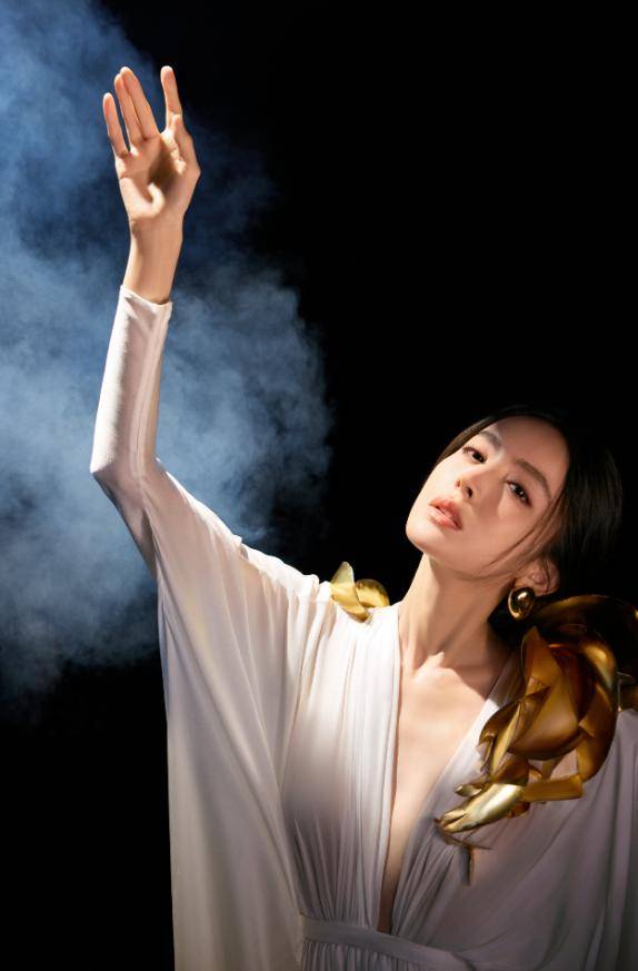 在动作和神态方面,古力娜扎同样表现得十分出色。她以一种动态的方式摆姿势,仿佛正在跳舞或走动。随着她的动作,裙子轻轻飘扬,仿佛一只白色的蝴蝶在花丛中翩翩起舞。她的眼神深邃而迷人,仿佛能够吸引人的灵魂。她的笑容灿烂而温暖,让人感受到她的自信和魅力。
