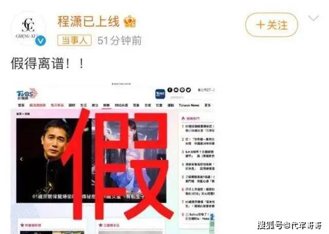 8月12日早上8点09分,有报道传出,仅过两个小时,程潇工作室便迅速作出回应并澄清称:“此事纯属虚假,极为荒谬!”