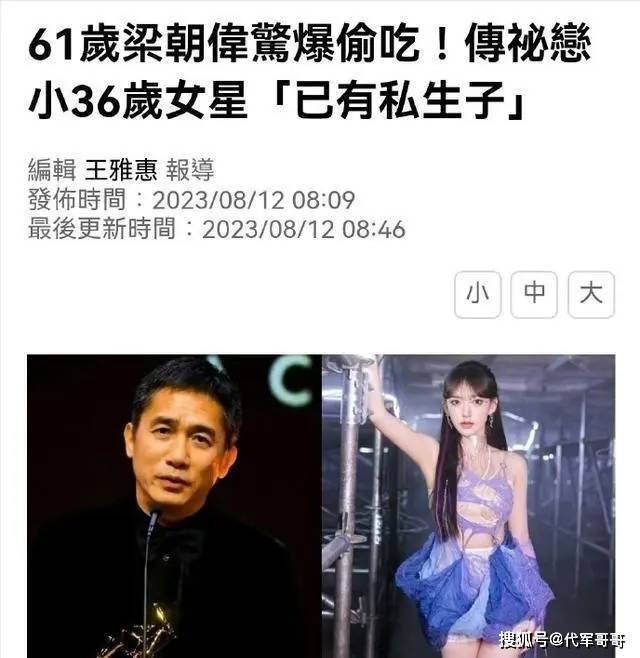 去年8月,港媒《东网》揭露了一则引人瞩目的绯闻,指出时年61岁的梁朝伟与年仅25岁的程潇之间的关系似乎颇为特殊。这篇八卦报道引发了广泛的关注和猜测。