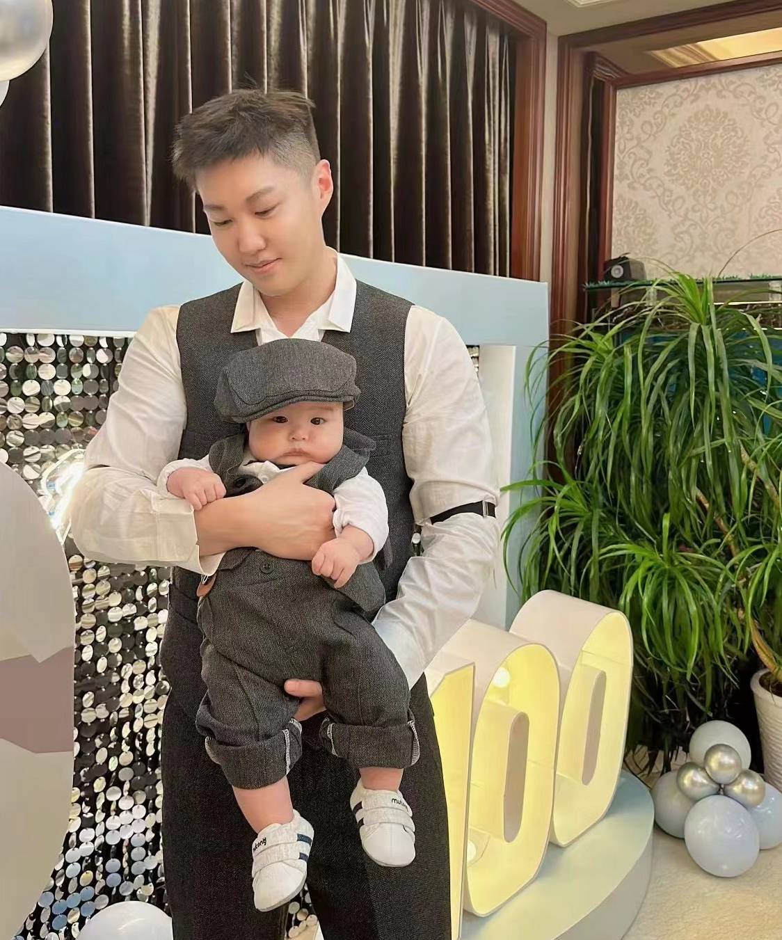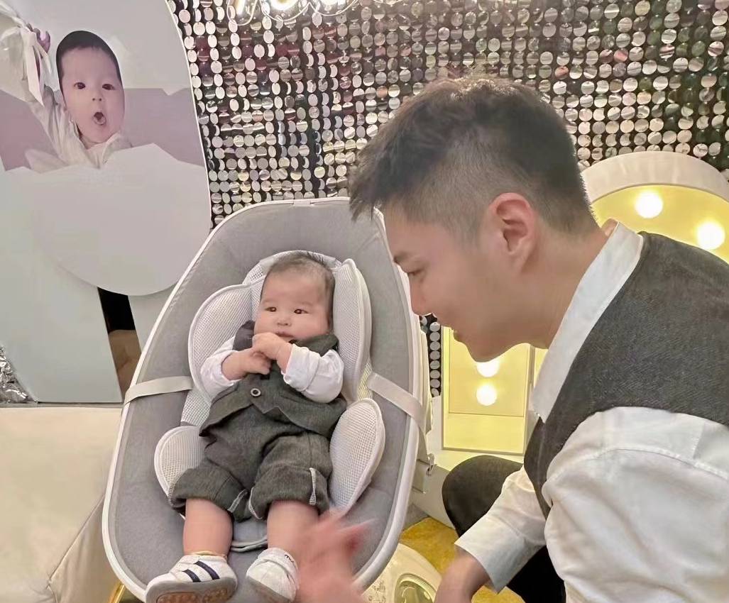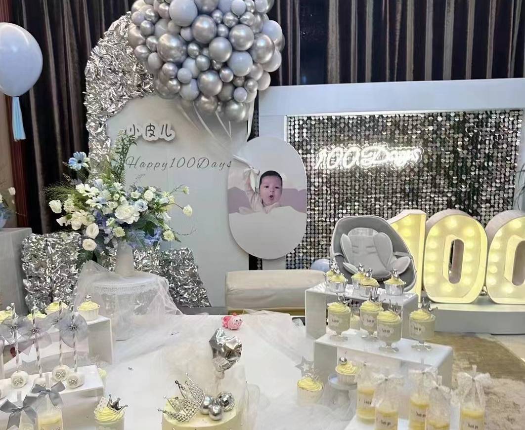 球球跟老公小陈给儿子举办了简单的百日宴。