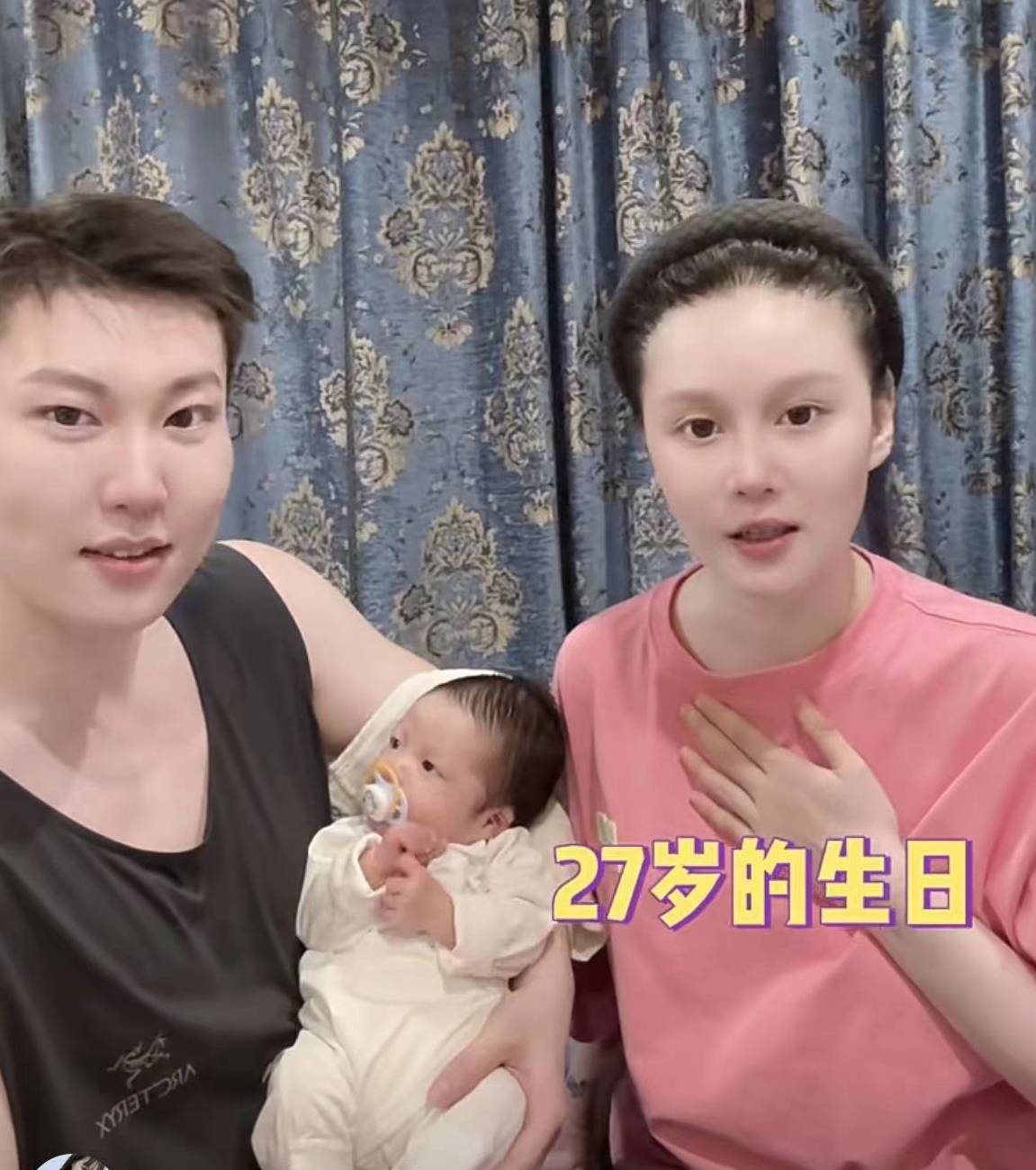 球球与老公抱着儿子一同出镜,小皮儿从出生到现在都由姥姥带,曾有网友询问球球,小皮儿吃什么奶粉,她表示自己不清楚,因为具体都是姥姥马丽娟在喂养。