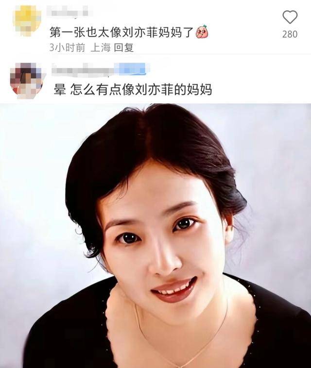 对此,有网友说:也太像刘亦菲妈妈了。还别说,这么看是有刘亦菲妈妈年轻时的影子。不过,两人都是美女,美的东西都有共同之处,两人看起来像也是正常的。