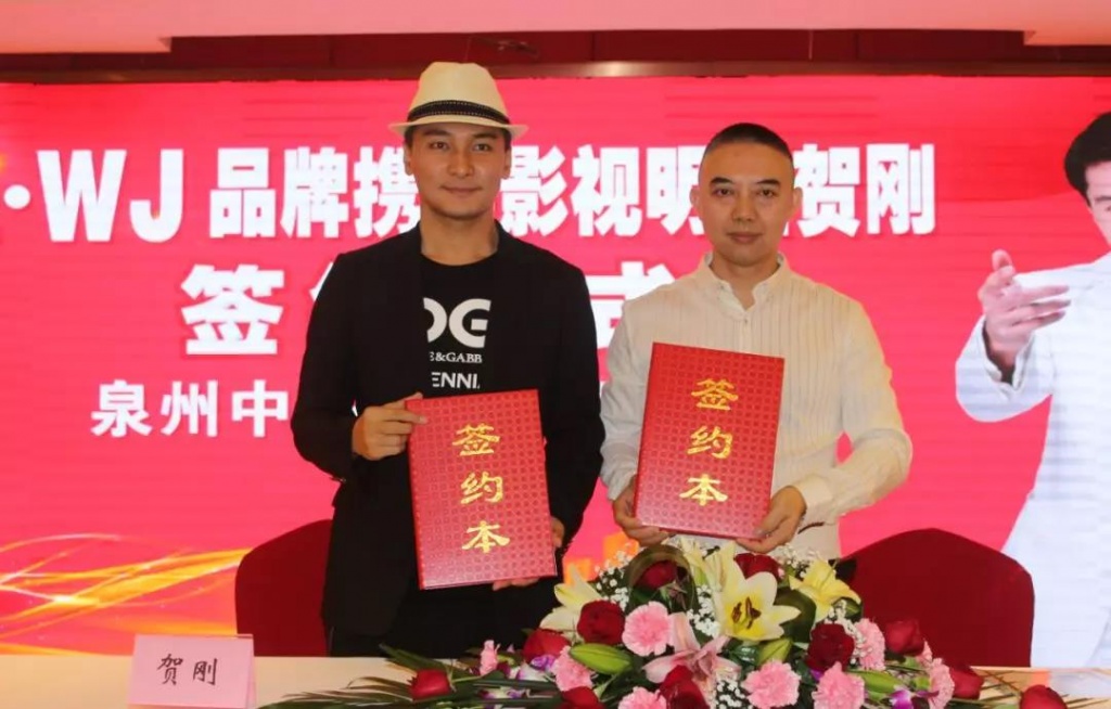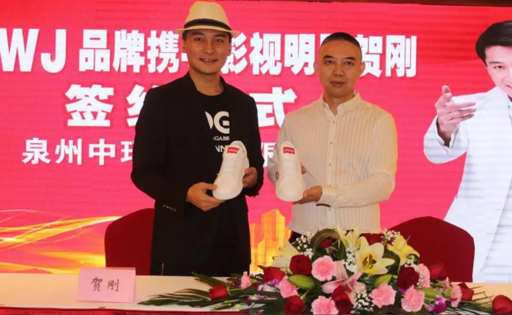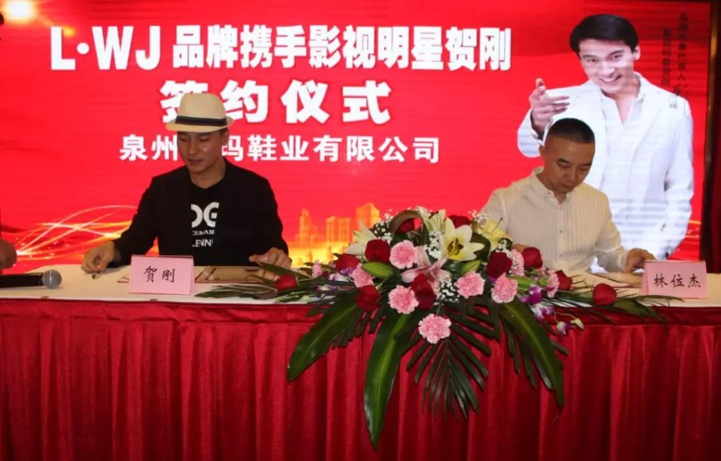 泉州中玛鞋业有限公司LWJ品牌董事长林位杰&著名明星贺刚签约现场
