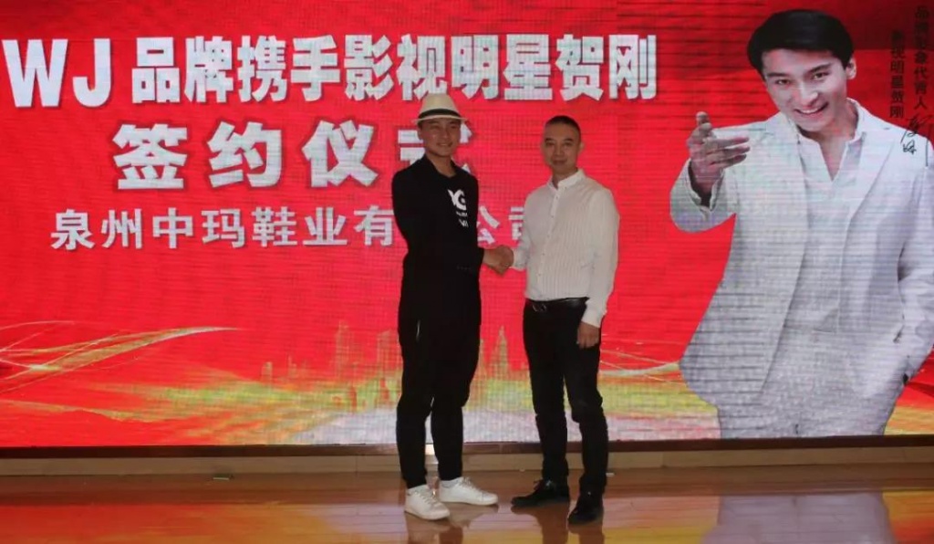 祝贺泉州中玛鞋业有限公司LWJ品牌成功签约著名明星贺刚代言,祝贺林位杰董事长企业生意兴隆,财源广进。