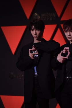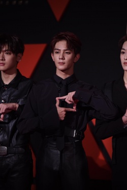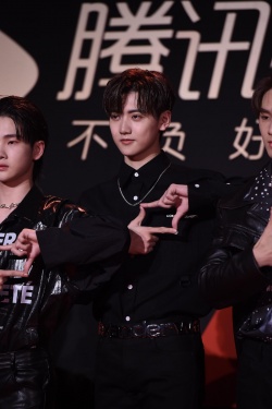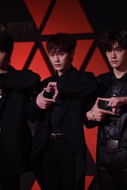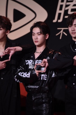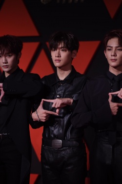 >组图:R1SE成团后首次公开亮相 红毯首秀全员黑色系酷劲足