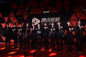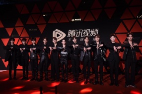 组图:R1SE成团后首次公开亮相 红毯首秀全员黑色系酷劲足