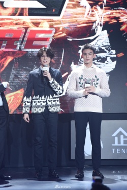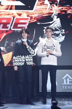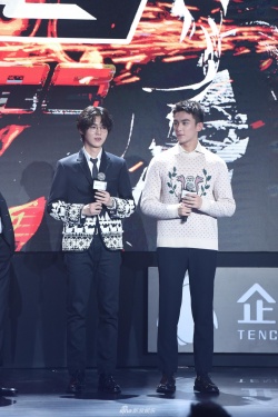 新浪娱乐讯 6月11日,电视剧《穿越火线》亮相腾讯视频年度发布会,两位男主角鹿晗、吴磊同框,一个是飘逸的中分卷发,一个是利落的寸头。两人解释称是为了贴合角色,鹿晗更自曝剧中造型非主流,自己每天穿着大裤衩、大拖鞋就去拍摄,而吴磊则是长袖长裤,两人造型风格差异明显。(图:王远宏)