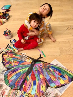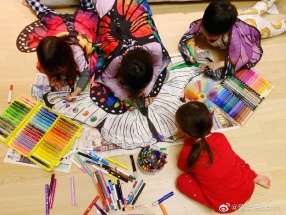 新浪娱乐讯 近日,陈浩民在微博上分享了几张和宝宝相处的照片,难得放假留在家中的他和四个小朋友一起帮一只大蝴蝶涂颜色,大家分工合作,画面十分温馨。