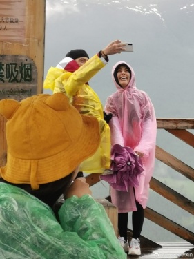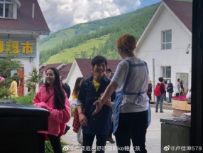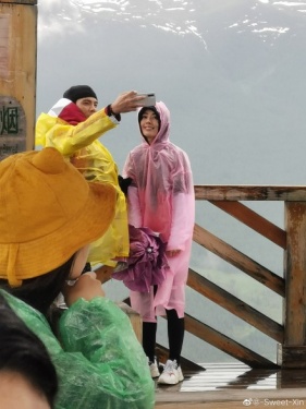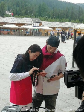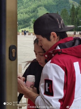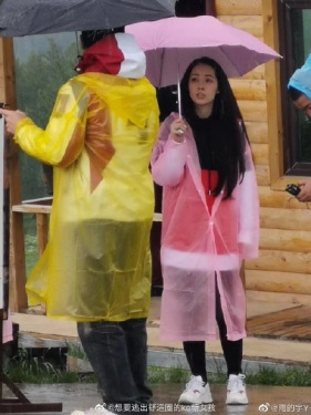 新浪娱乐讯 近日有网友偶遇向佐郭碧婷这对新婚夫妻录制真人秀节目,据悉两人录制《我家小两口》。当天正好下雨,两个人在雨中打伞紧紧依偎在一起。雨过之后两人心情大好,一起对着镜头大笑自拍,女神笑成了女神经。
