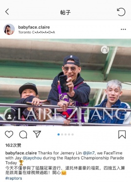 >组图:兄弟情MAX!林书豪猛龙队冠军游行与周杰伦现场视频通话