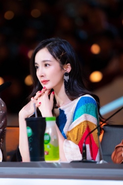 新浪娱乐讯 近日,杨幂现身录制《巅峰之夜》。她身穿彩虹条纹衫超减龄,卷发披肩妩媚动人。心情大好的杨幂不时比耶,满脸笑意,美出新高度。