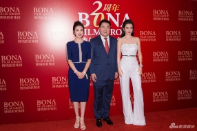 新浪娱乐讯 6月19日,2019上海国际电影节,“博纳之夜”举办。博纳影业集团总裁于冬、和颂传媒董事长李雪及和颂传媒合伙人、演员李冰冰共同出席。博纳影业宣布,入股和颂传媒,成为后者第二大股东。李冰冰穿露肩连体裤,携妹妹李雪亮相。