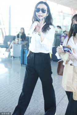 新浪娱乐讯 6月22日,王鸥现身首都机场。她穿白衬衫搭黑色宽松休闲裤,舒适悠闲,大步疾走御姐范十足,对镜挥手甜笑,亲和力max。(视觉中国/图)