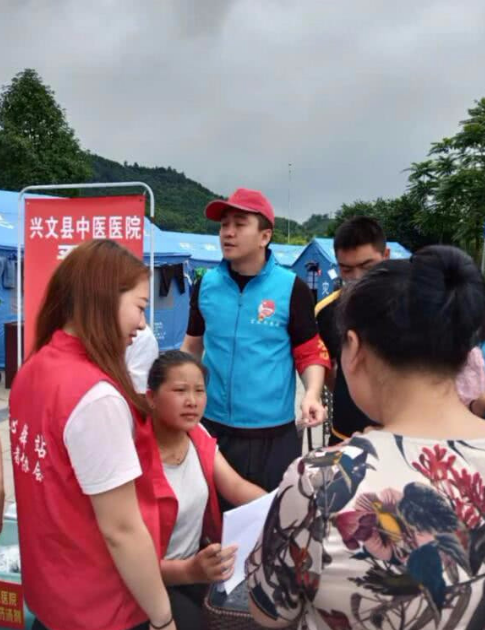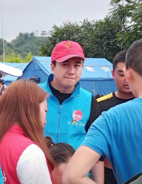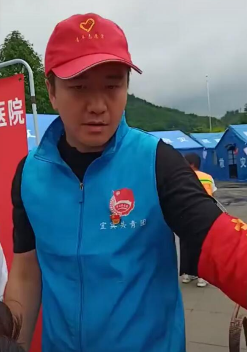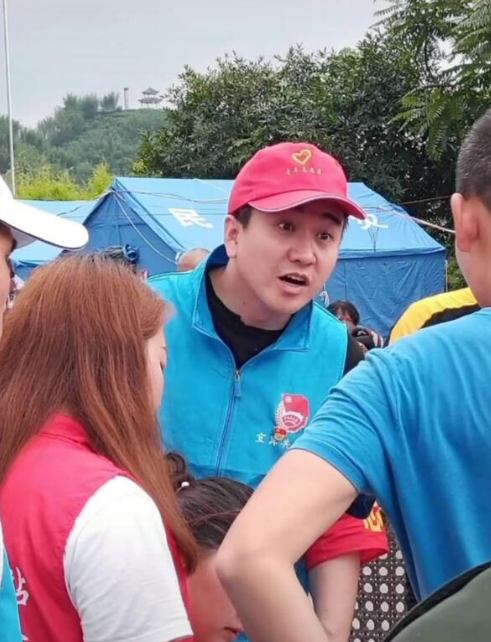 >组图:翟天临现身四川宜宾 戴红帽子穿蓝背心为灾民发放物资