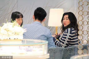 新浪娱乐讯 6月25日讯,赌王何鸿燊四房大千金、现年28岁的何超盈,近日宣布与21岁的哈佛学霸辛奇隆已订婚;而怀孕七个月的她,已计划明年跟未婚夫到葡萄牙举行古堡婚礼!日前,何超盈与结伴未婚夫恩爱出街,到铜锣湾购物买衣服、买钻戒,二人互动甜蜜十足,在珠宝店内何超盈还不停嘟嘴撒娇,还摸着未婚夫的头甜笑,简直是恩爱满分。