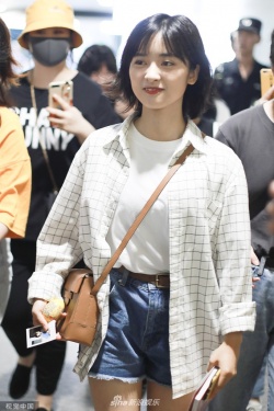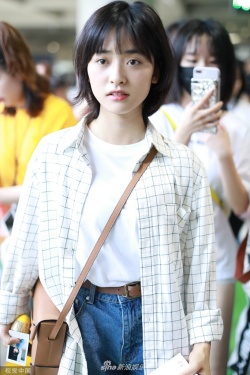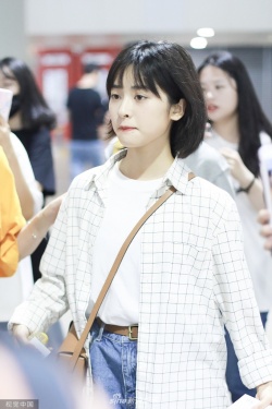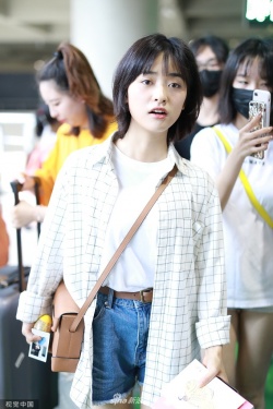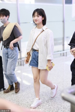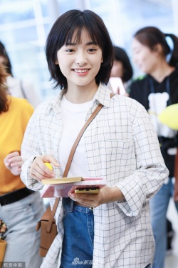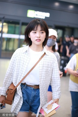 新浪娱乐讯 6月27日,沈月现身上海机场。她身穿白色T恤搭配格子衬衫,手上拿上书,斜挎包包好似女大学,随手歪头撩发文艺范十足。