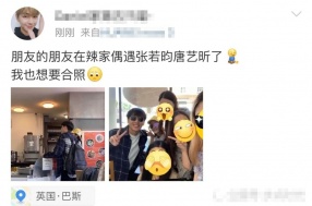新浪娱乐讯 近日,张若昀唐艺昕正在英国度蜜月,有网友在微博上晒出了偶遇两人现身就餐的照片。照片中,小两口一身休闲装扮低调十足,大方与粉丝合照开心比V。
