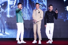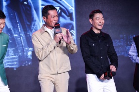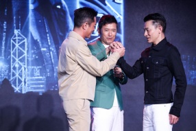 >组图:刘德华古天乐两代杨过同台扳手腕 华仔模仿007举枪姿势